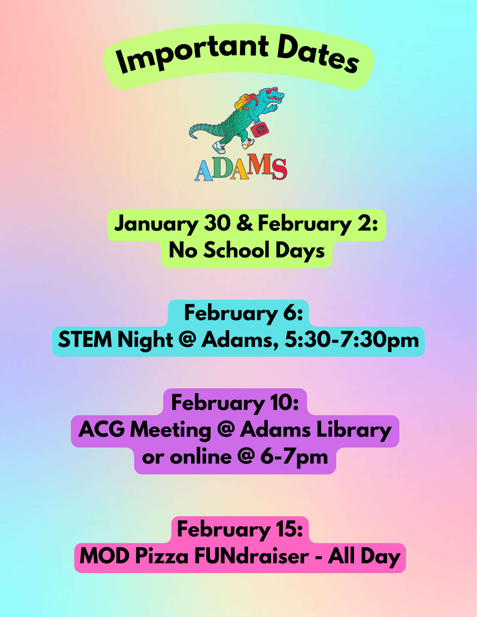 Welcome to the Adams Community Group, the PTA for Adams Elementary!